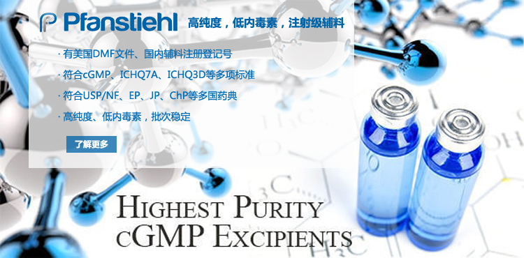 “熱烈祝賀Pfanstiehl的注射級甘氨酸Glycine(G-140)喜獲CDE登記號F20250000403, 這是Pfanstiehl產品獲得的第18個CDE登記號!”甘氨酸在醫藥輔料制劑中應用廣泛,, 可作為緩沖劑,增溶劑,穩定劑等,具有諸多優勢。Pfanstiehl秉承一貫高品質理念,為滿足全球生物制藥行業對于高品質甘氨酸的需求,隆重推出的注射級甘氨酸Glycine (G-140), 具有超高純度,超低內毒素,超低金屬殘留的特點,單獨檢測29種金屬離子,并且新增DNA,RNA,DNA酶,RNA酶和脂肪酶,亞硝酸鹽等多項質量指標的檢測,符合多國藥典規定(USP, EP, BP, JPE, ChP),可用于生物治療性藥物和疫苗的生產。產品信息:· 產品名稱:Glycine, High Purity, Low Endotoxin, Low Metals, USP, EP, BP, JPE, ChP (G-140)· 中文名稱:甘氨酸· 分子式:C2H5NO2· 分子量:75.07 g / mol· CAS號:56-40-6· 產品貨號:G-140產品特點: · 超高純度,超低內毒素,超低微生物含量,超低金屬雜質殘留· 質量指標新增DNA,RNA,DNA酶,RNA酶,脂肪酶和亞硝酸鹽檢測· 符合多國藥典:USP, EP, BP, JPE, ChP· 符合ICH Q3D標準· 符合GMP標準· 已獲DMF和CDE登記號 產品應用:· 緩沖劑· 穩定劑· 增溶劑如果您對Pfanstiehl注射級別Glycine G-140感興趣,歡迎聯系Pfanstiehl 中國區代理商北京西美杰科技有限公司獲得如下詳細的產品概況說明文件和測試樣品。Pfanstiehl Inc.最新產品系列如下,歡迎聯系北京西美杰科技有限公司獲取100g裝免費樣品。北京西美杰科技有限公司為Pfanstiehl中國代理,為客戶提供完善的技術支持與售后服務。歡迎撥打西美杰客服電話400-050-4006或者登陸網站www_xmjsci_com.520beike.com了解更多信息。 更多>